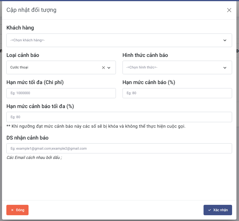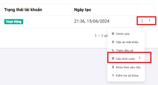 Cấu hình cướcđể cấu hình cước cho khách hàng đã chọn