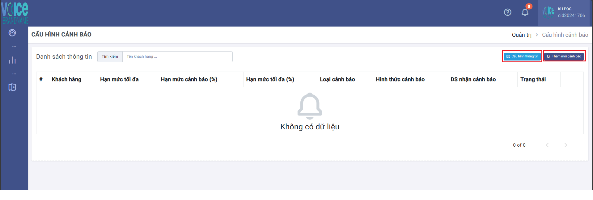 Trang này sẽ hiển thị các cảnh báo đã cấu hình.