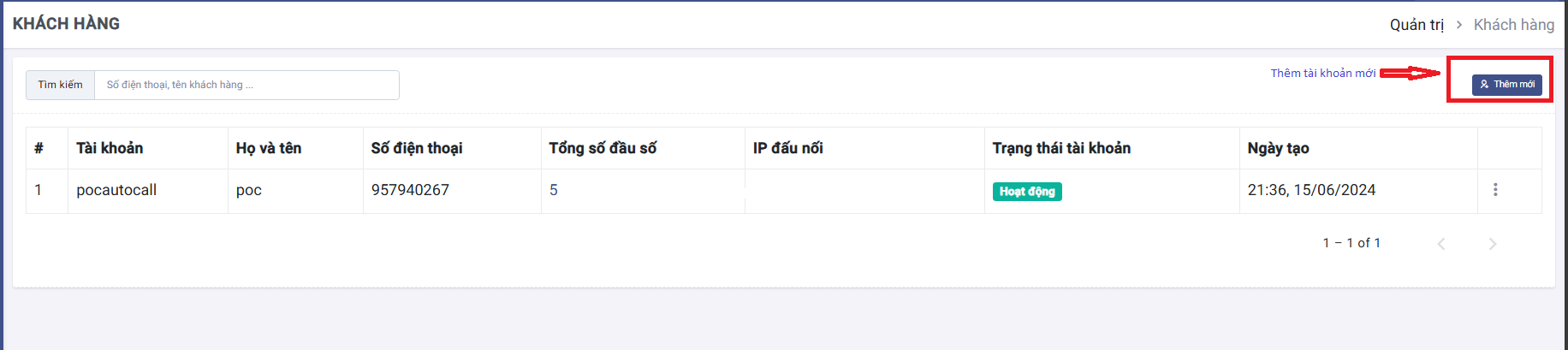 Nút Thêm mới: Tạo một tài khoản khách hàng mới