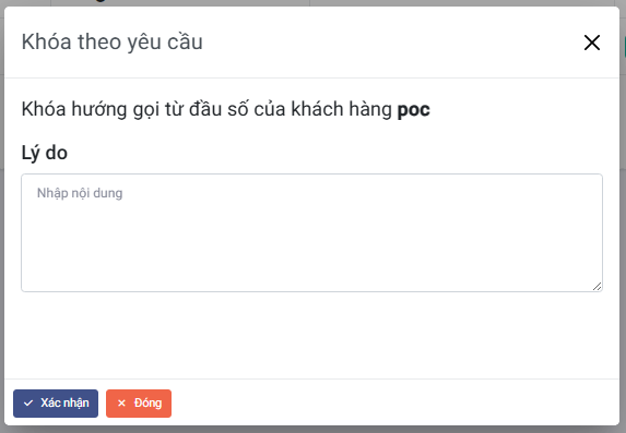 Nhập lý do khoá và nhấn xác nhận để khoá tài khoản