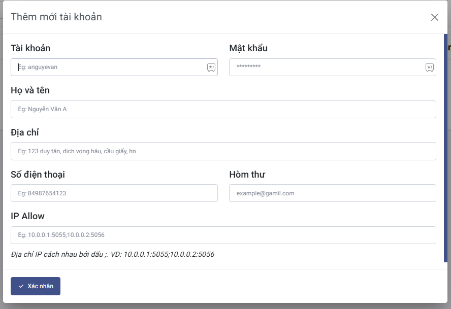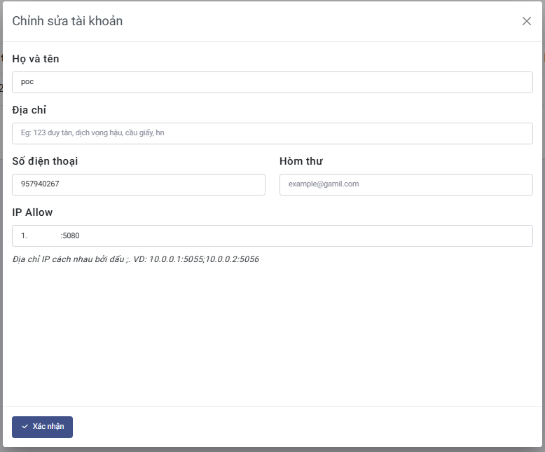 Chỉnh sửa các thông tin và click Xác nhận để lưu lại