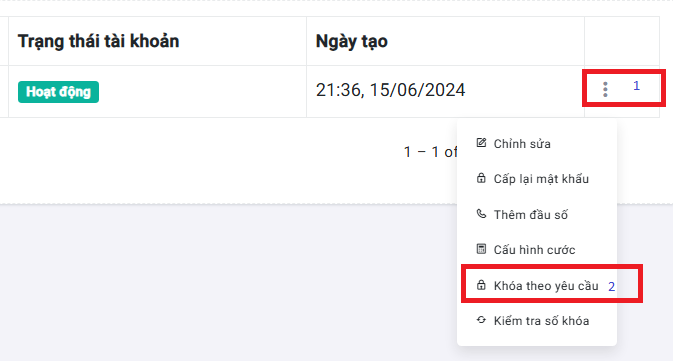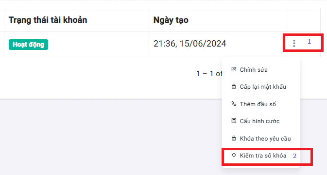 Kiểm tra số khoáđể kiểm tra tình trạng số đang cấp cho khách hàng