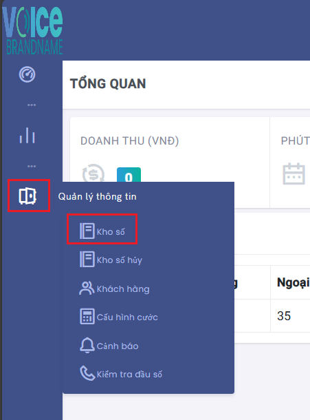 Truy cập vào menu như hình để vào màn hình kho số