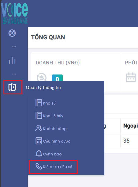 Chọn Kiêm Tra Đầu Số trong Menu Quản lý thông tin để vào trang Kiêm Tra Đầu Số