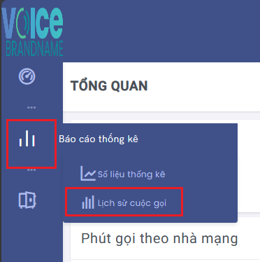 Truy cập vào menu như hình để vào màn hình Lịch sử cuộc gọi