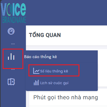 Truy cập vào menu như hình để vào màn hình số liệu thống kê